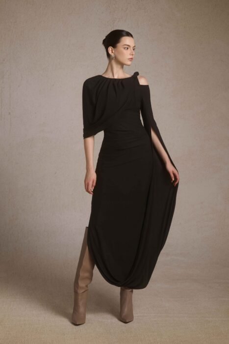 Be the first to review “Orion Draped Shoulder Dress in Black” Cancel reply